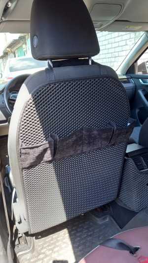 Защитная накидка на спинку переднего сиденья с карманами и без. Материал эва. Цвет материала и цвет окантовки на выбор.