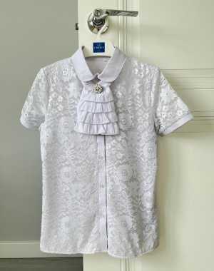 Блуза для школы. Состояние отличное. Как новая. Надели пару раз всего. Съёмные жабо и брошь.