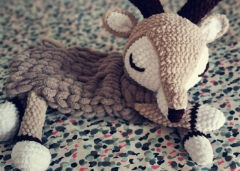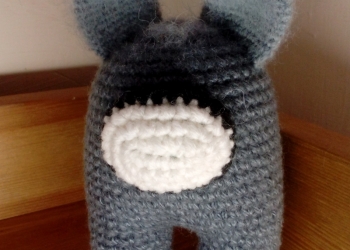 Игрушка выполнена из плюшевой пряжи в технике амигуруми, наполнитель – холлофайбер, глазки и носик – на безопасном креплении.